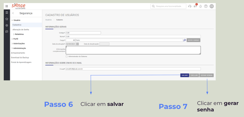 Siga o detalhamento abaixo para criar o novo usuário: