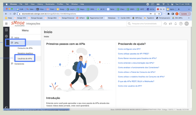 - Liberação de API: será necessário criar um usuário exclusivo para a CUB e liberar todas funcionalidades necessárias. Importante se atentar ao limite de requisições do seu pacote.