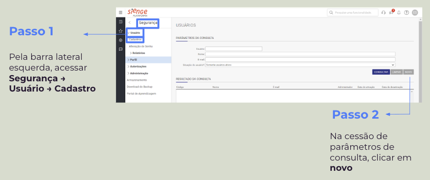 Primeiro, é necessário cadastrar o novo usuário e enviar para ele um convite de acesso ao ERP